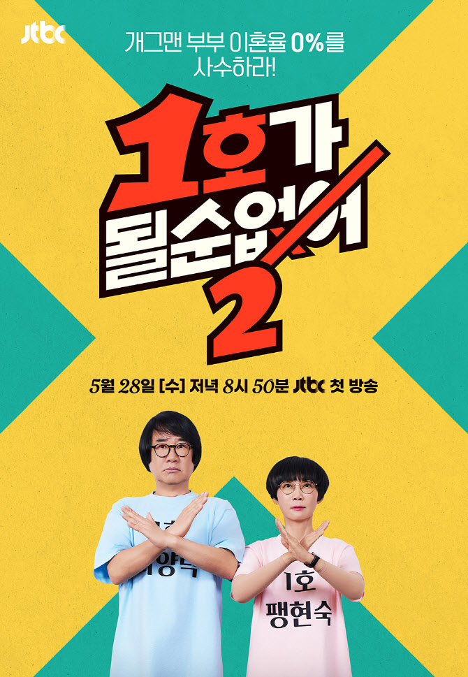 이처럼 첫 방송부터 ‘매운맛’을 예고하고 있는 ‘1호가 될 순 없어2’가 팽락 부부의 모습을 담은 메인 포스터도 공개됐다. 1988년 탄생한 개그맨 부부 ‘1호’ 커플 티셔츠를 맞춰 입은 최양락과 팽현숙. 아슬아슬 긴장되는 두 사람이지만 개그맨 부부 이혼율 0%의 기록을 사수하기 위한 결연함이 느껴진다. 과연 이들이 개그맨 부부 ‘이혼 1호’ 탄생의 위기를 극복할 수 있을지 눈길을 끈다.