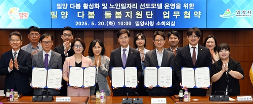 (밀양=연합뉴스) 김동민 기자 = 경남 밀양시는 20일 시청 소회의실에서 밀양 다봄센터 활성화와 지역 어르신 사회 참여 확대를 위한 '밀양 다봄 돌봄지원단' 업무협약식을 했다.