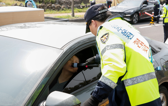 제주시 연북로에서 동부경찰서 소속 경찰관들이 집중 음주운전 단속을 하고 있다. 뉴시스 |