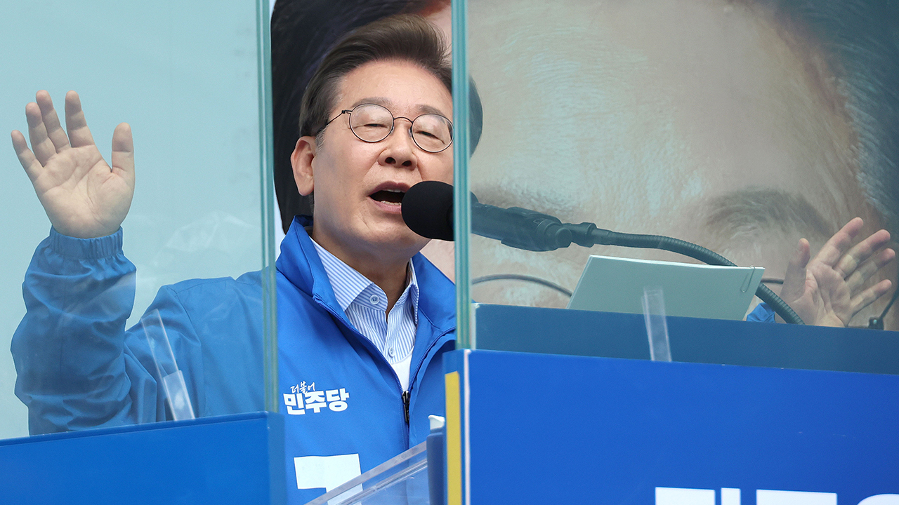 ▲ 더불어민주당 이재명 대선 후보가 20일 경기 의정부 로데오거리에서 열린 유세에서 시민들에게 지지를 호소하고 있다.