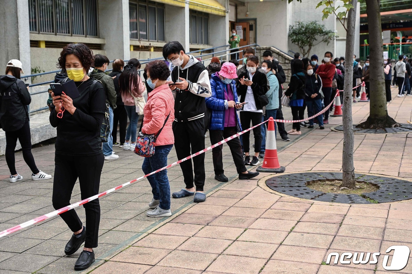 12일(현지시간) 오미크론 변이 확산으로 홍콩의 코로나19 검사소에 주민들이 줄을 서서 검사를 기다리고 있다. ⓒ AFP=뉴스1 ⓒ News1 우동명 기자 |
