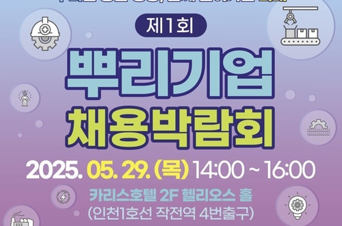 (인천=연합뉴스) 신민재 기자 = 인천시와 인천테크노파크(인천TP)는 고용노동부, 계양구와 공동으로 오는 29일 계양구 작전동 카리스호텔에서 '2025년 제1회 뿌리기업 채용박람회'를 연다고 21일 밝혔다.