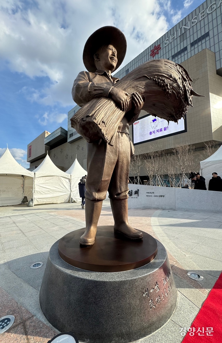 지난해 12월 대구 동대구역 광장에 박정희 전 대통령 동상이 설치돼 있다. 백경열 기자 |