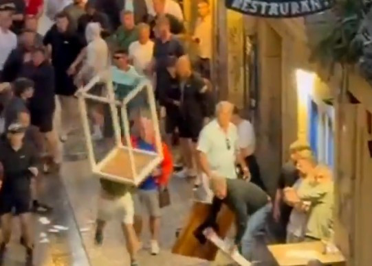 급기야 몇몇 팬들이 테이블과 의자를 던지기 시작하며 충돌은 더욱 격화했습니다.