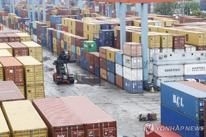 인도네시아 자카르타 탄중 푸리옥 항구에 쌓여있는 컨테이너들. (사진=연합뉴스) |