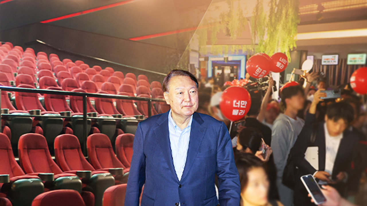 그러니까 오늘 저 영화 포스터에 영화 제목보다도 더 크게 쓰여 있는 글자가 있었다고 합니다. 어떤 글이었냐면 6월 3일 부정선거 확신한다는 글이었다고 하거든요. 그래서 이게 대선 이후에 대선 결과에 대해서 불복 가능성을 의미하는 것 아니냐 이런 이야기들도 나오고 있습니다.