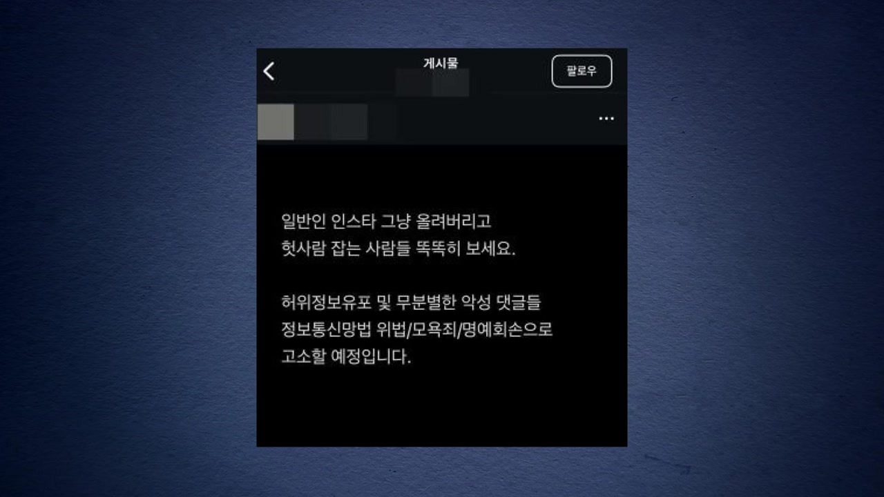 인터넷 커뮤니티에 한 누리꾼이 이 여성의 SNS 사진과 조롱 섞인 글을 올리자 강경 대응에 나선 겁니다.