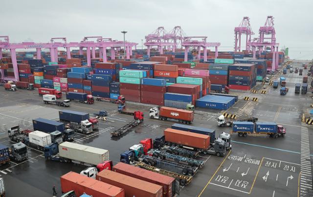 지난 16일 인천시 연수구 인천신항에서 컨테이너 상·하역 작업이 이뤄지고 있다. 뉴스1 |