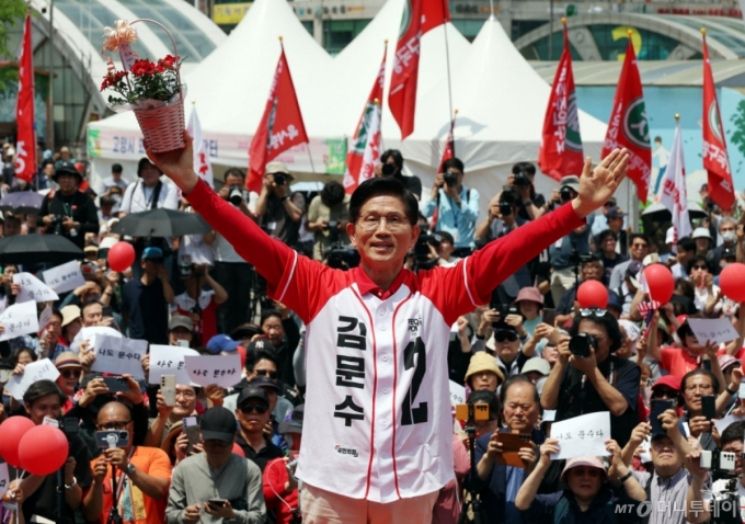 김문수 국민의힘 대선 후보가 21일 경기 고양시 화정역 문호광장에서 유세를 하고 있다. 2025.05.21. /사진=뉴시스 /사진=고승민 |
