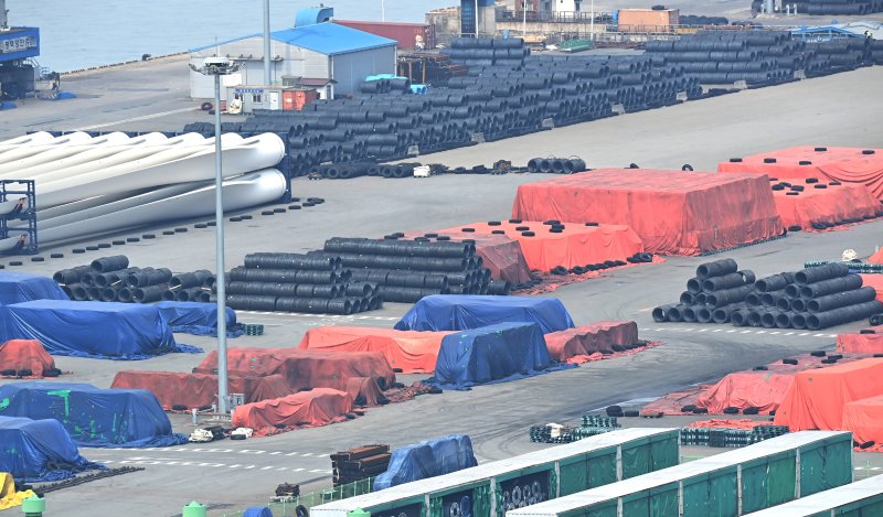 경기도 평택시 포승읍 평택항 수출 야적장에 쌓여있는 철강 제품들. 뉴시스 |