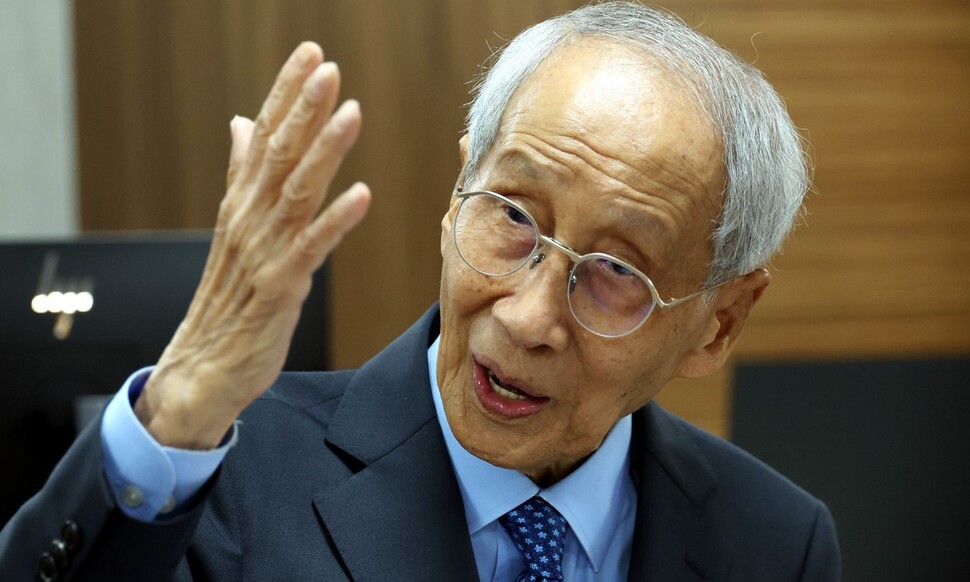 윤여준 더불어민주당 상임총괄선거대책위원장이 20일 오전 서울 여의도 중앙당사에서 한겨레와 인터뷰하고 있다. 김경호 선임기자 jijae@hani.co.kr |