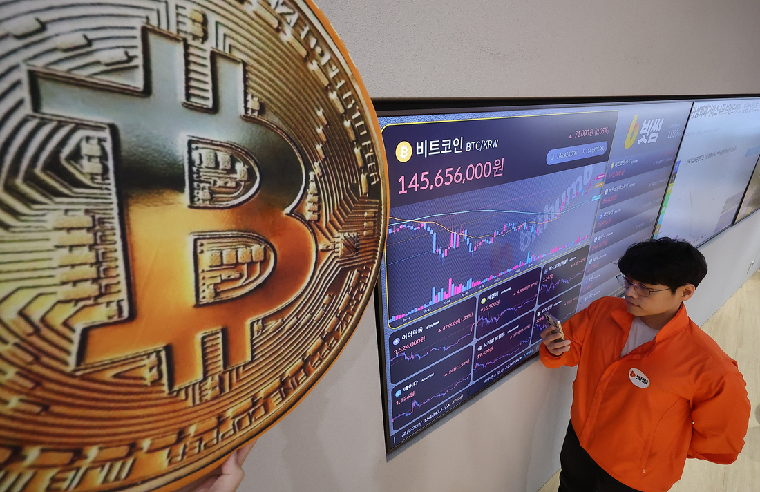 지난 12일 서울 서초구 빗썸라운지 강남본점 전광판에 비트코인 가격이 표시되고 있다. 연합뉴스 |