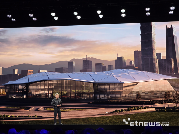 젠슨 황 엔비디아 CEO가 19일(현지시간) 컴퓨텍스 기조연설에서 대만 신사옥을 공개했다. (사진=김영호 기자) |