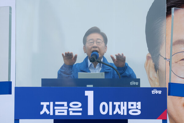이재명 더불어민주당 대선 후보가 20일 경기 고양시 일산문화광장에서 열린 집중유세에서 시민들에게 지지를 호소하고 있다. 연합뉴스 |