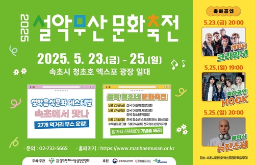 (속초=연합뉴스) 류호준 기자 = 강원 속초시는 오는 23∼25일 강원 속초시 조양동 청초호 엑스포 광장 일원에서 '2025 설악무산문화축전'을 개최한다고 22일 밝혔다.