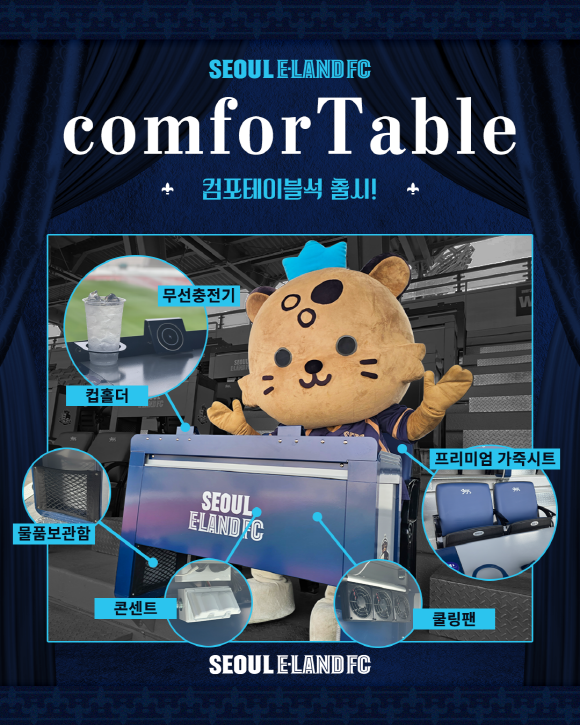 이랜드 관계자는 “서울 이랜드를 사랑해 주시는 팬들이 보다 편안하고 만족스러운 환경에서 경기를 관람하실 수 있도록 컴포테이블석을 기획했다. 팬들에게 색다른 관람 경험을 선사하기를 바라며 앞으로도 팬 중심의 혁신적인 서비스를 확대하기 위해 최선을 다하겠다”고 말했다.