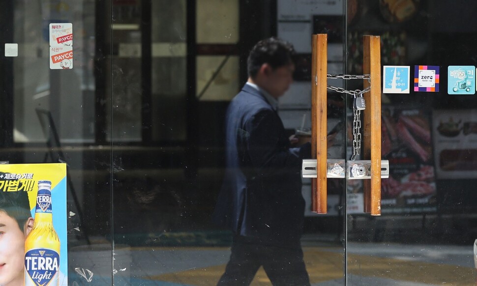 서울 시내 한 폐업한 식당의 문이 굳게 잠겨있다. 연합뉴스 |