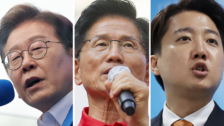 더불어민주당 이재명 후보는 22일 제주 동문로터리 유세에서 “(제주 4·3사건 등) 국가폭력범죄에 대해선 영구적으로 공소시효를 배제하겠다”고 했다(왼쪽 사진). 가운데 사진은 경기 광명에서 유세 중인 국민의힘 김문수 후보 모습. 김 후보는 이날 국회의원 10% 감축 등 정치개혁 공약도 내놨다. 개혁신당 이준석 후보는 국회에서 기자회견을 열고 “끝까지 이준석, 개혁신당 이름으로 승리할 것”이라며 김 후보와의 단일화 가능성에 선을 그었다. 제주=뉴시스·광명=장승윤 tomato99@donga.com·박형기 기자 oneshot@donga.com |