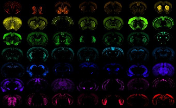 미국 앨런연구소 연구팀이 쥐의 뇌에 있는 다양한 세포 집단에 ‘증강인자 AAV 벡터’를 적용하자 표적으로 삼은 영역에 유전 물질이 발현되고 있다. 앨런연구소 제공 |