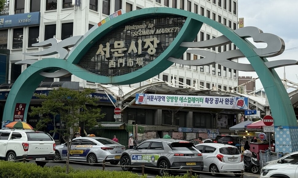 21일 찾아간 대구 중구 달성로 서문시장 입구. 손현수 기자 |
