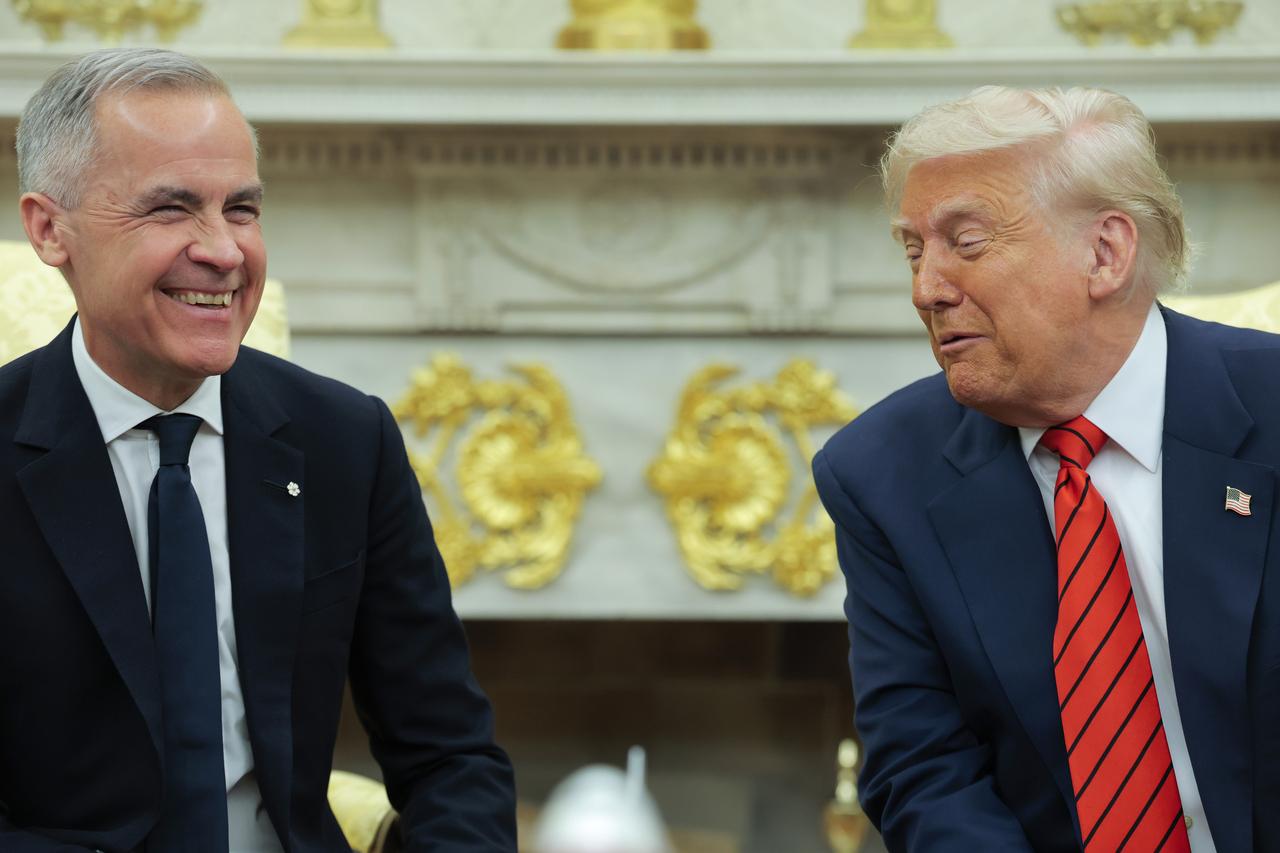 도널드 트럼프 미국 대통령(오른쪽)이 지난 6일(현지시간) 워싱턴 DC 백악관 집무실에서 마크 카니 캐나다 총리를 만나는 모습. [게티이미지] |