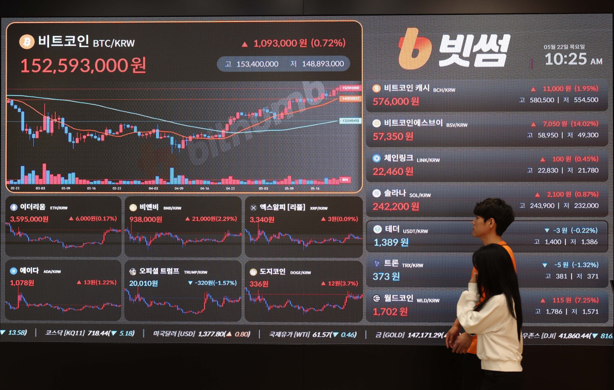 비트코인이 사상 최초로 11만 달러를 돌파했다. 22일 서울 서초구 빗썸라운지에 비트코인 등 가상자산 실시간 거래가격이 표시되고 있다. 미 가상자산 거래소 코인베이스에 따르면 미 동부 시간 기준 21일 오후 7시 25분 비트코인 1개당 가격은 24시간 전보다 3.63% 오른 11만774.26달러를 기록, 4개월 만에 최고가를 경신했다. 최근 스테이블코인(법정화폐 등에 가치가 연동되도록 설계한 가상자산) 관련 법안이 미 상원을 통과하는 등 가상자산이 정당한 금융 수단으로 인정될 것이란 기대 등이 작용하고 있단 분석이 나온다. 신태현 기자 holjjak@ |