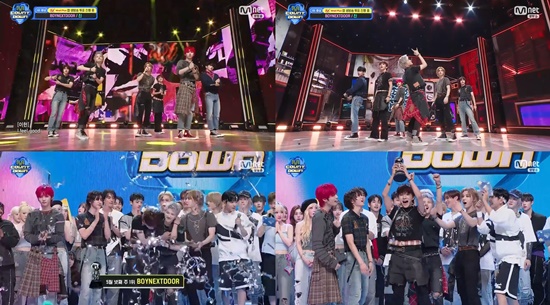 보이넥스트도어(성호, 리우, 명재현, 태산, 이한, 운학)는 지난 22일 방송된 Mnet ‘엠카운트다운’에서 미니 4집 ‘No Genre’의 타이틀곡 ‘I Feel Good’으로 1위를 차지했다.