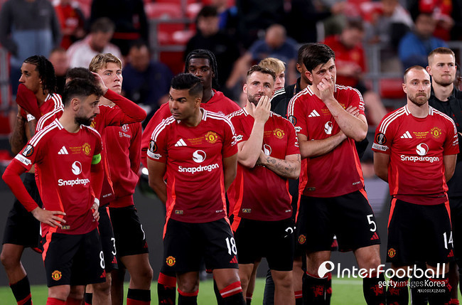 맨유는 22일 오전 4시(한국시간) 스페인 빌바오에 위치한 산 마메스에서 열린 2024-25시즌 유럽축구연맹(UEFA) 유로파리그(UEL) 결승전에서 토트넘에 0-1로 패배하며 우승에 실패했다.