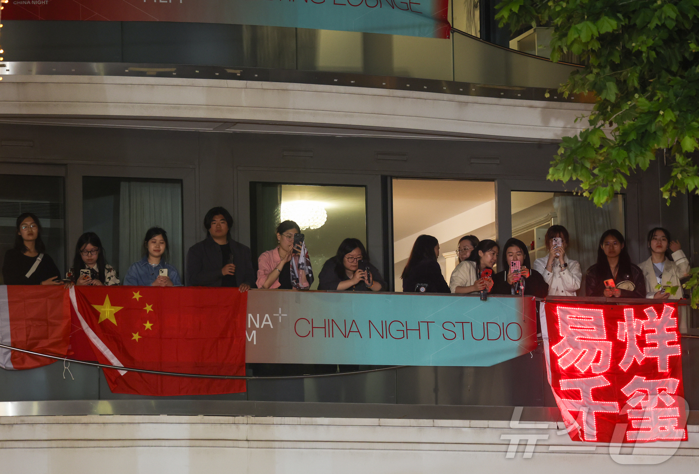 (칸=뉴스1) 이준성 기자 = 22일(현지시간) 프랑스 남부 소도시 칸(Cannes) 팔레 데 페스티발(Palais des Festivals) 뤼미에르 대극장에서 열린 ‘제78회 칸 국제영화제’ 경쟁 부문 진출작 영화 ‘부활(Resurrection / 광야시대)’의 월드 프리미어 시사회 레드 카펫이 보이는 맞은 편 건물 발코니가 중국 팬들로 가득 차 있다. 2025.5.23/뉴스1