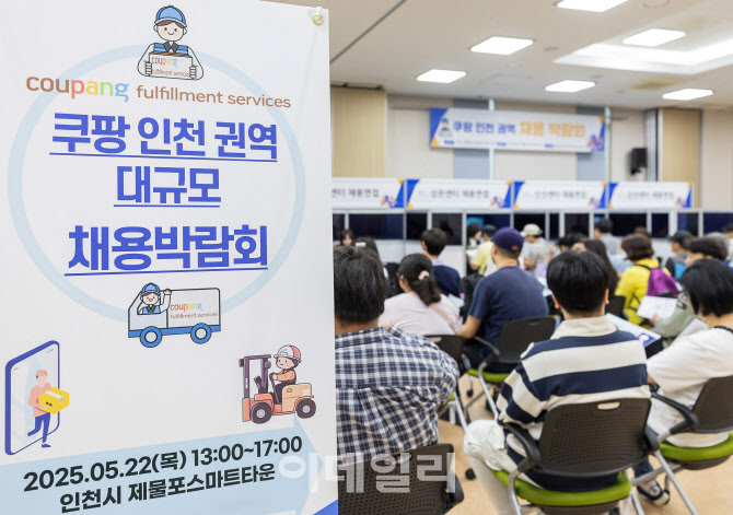 쿠팡풀필먼트서비스와 인천시 일자리센터가 지난 22일 인천 제물포스마트타운에서 개최한 ‘쿠팡 인천권역 대규모 채용박람회’에서 구직자들이 현장면접 대기 중이다. (사진=쿠팡) |