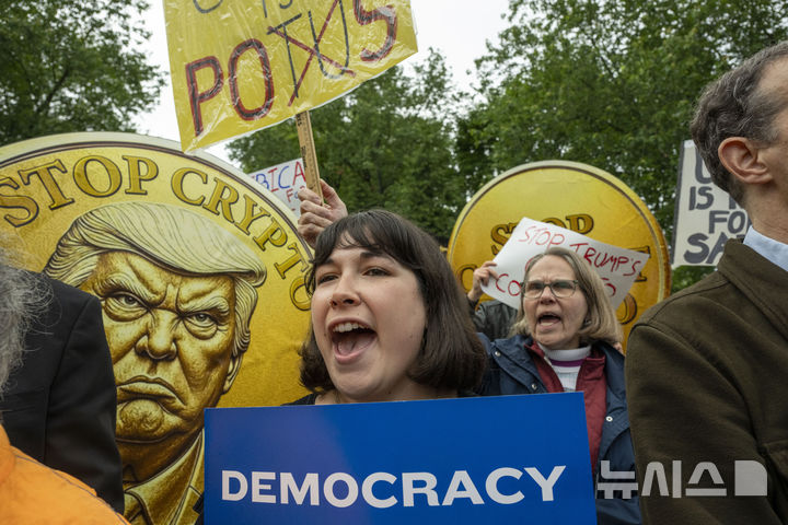 만찬장 밖 시위대 “부끄러워 하라” “암호화폐 부패” 연호