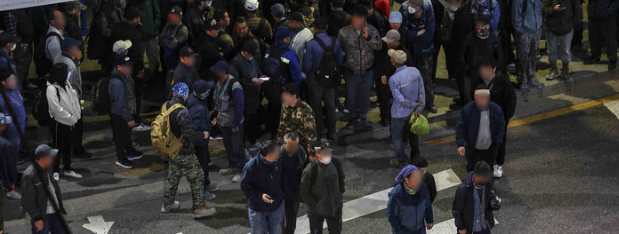 24일 고용정보원이 최근 공개한 ‘고용동향브리프 제2호’를 보면 건설업 부진 등의 영향으로 50대 고용률이 12개월 연속 감소했다. 사진은 지난달 10일 새벽 서울 구로구 남구로역 인근 인력 시장. / 뉴시스 |