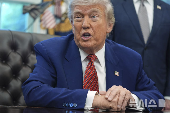 [워싱턴=AP/뉴시스]도널드 트럼프 미국 대통령이 23일(현지 시간) 백악관 집무실에서 원자력 에너지 관련 행정명령에 서명한 후 기자들의 질문에 답하고 있다. 2025.05.24. |