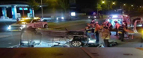 A씨가 몰던 차량의 속도는 무려 시속 159㎞였고, 사고 충격으로 스파크 차량이 뒤집혔다.