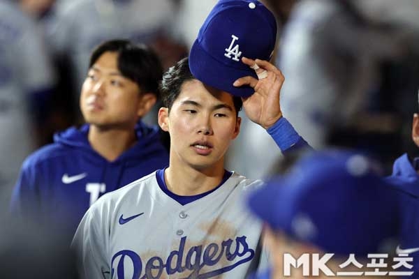 다저스 김혜성이 경기를 마친 뒤 더그아웃을 빠져나가고 있다.