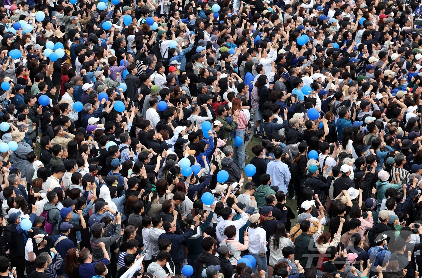 (시흥=뉴스1) 이재명 기자 = 이재명 더불어민주당 대선 후보가 24일 경기 시흥 배곧아브뉴프랑 센트럴광장에서 유세를 하고 있는 가운데 시민들이 이 후보의 이름을 연호하고 있다. (공동취재) 2025.5.24/뉴스1