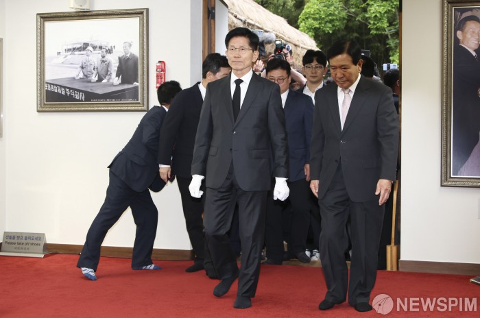 [구미=뉴스핌] 정일구 기자 = 김문수 국민의힘 대선 후보가 24일 오후 오후 경북 구미시 박정희 전 대통령 생가를 찾아 참배하고 있다. 2025.05.24 mironj19@newspim.com