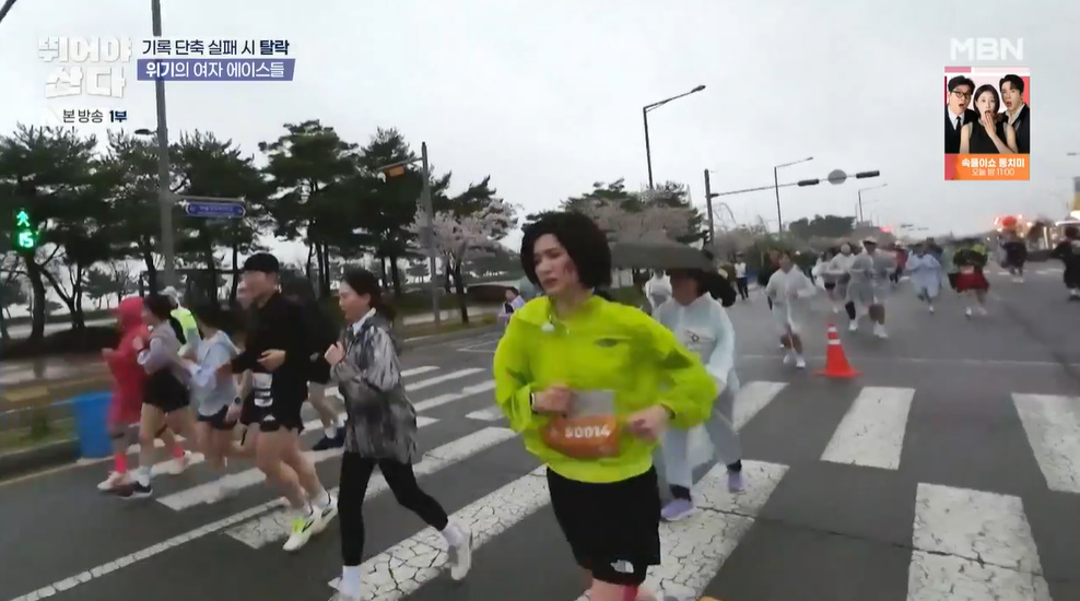 이후 그는 "앞이 잘 안 보인다"고 털어놓았고, 션이 페이스를 올리려 하자 못할 것 같다며 현 상태를 고백했다.