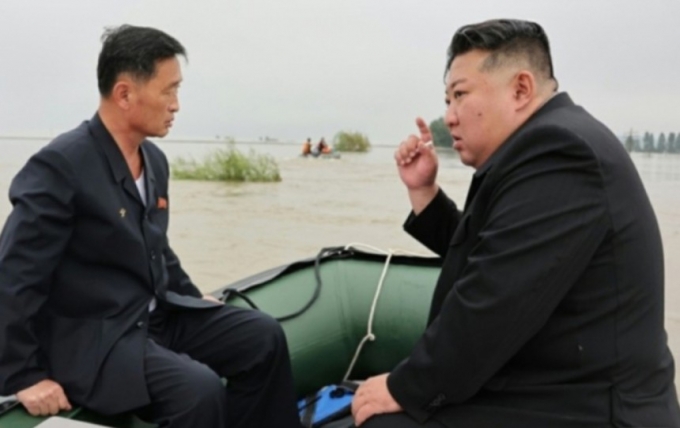 김정은 북한 노동당 총비서가 지난해 8월1일 평안북도 신의주시 피해 지역을 살피고 있는 모습. 김 총비서 왼편엔 재떨이가 놓여져 있으며, 그의 오른손엔 담배가 쥐어져 있다. / 사진=뉴스1(노동신문) |