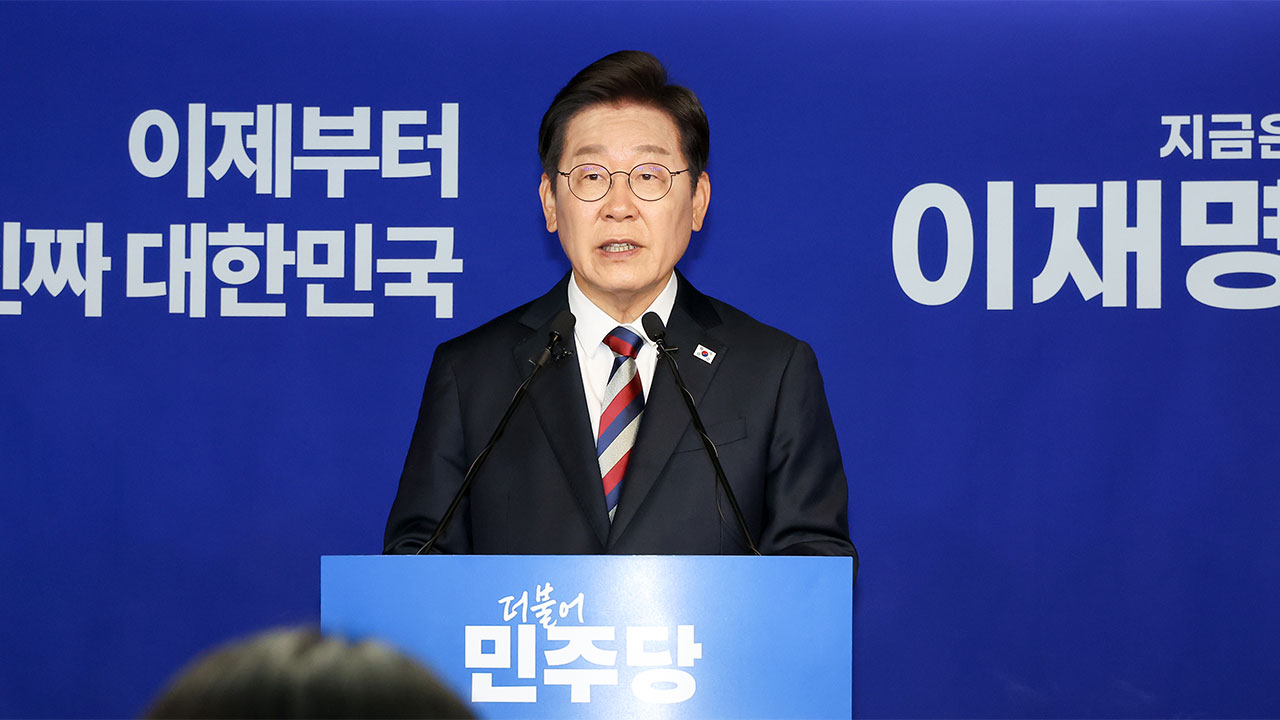 ▲ 더불어민주당 이재명 대선 후보가 25일 서울 여의도 당사에서 열린 기자회견에서 발언하고 있다.