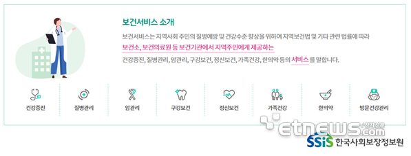 공공보건포털 'e보건소'는 전국 보건소에서 운영하는 다양한 건강관리 사업 정보를 한눈에 확인하고, 필요한 서비스를 온라인을 통해 손쉽게 이용할 수 있도록 지원하는 국민 맞춤형 보건서비스 포털이다.
