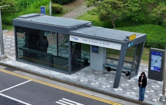 인천테크노파크역 버스정류장 스마트 쉘터. 인천경제자유구역청 |