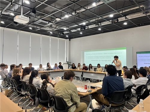 국제관계·생화학·정치학·시민리더십 등을 전공한 양국 학생들은 국가 폭력의 정당성 여부, 계엄군의 책임, 시민의 무장 저항에 대한 윤리적 평가 등을 토론했다.