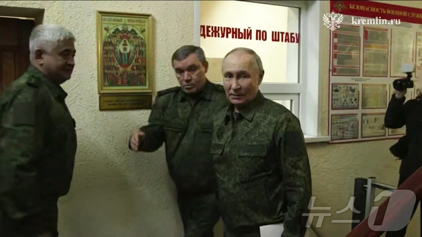 블라디미르 푸틴 러시아 대통령이 지난 3월 12일(현지시간) 우크라이나 군에 반격하고 있는 접경지 쿠르스크의 전투 사령부에 녹색 군복을 입고 방문하고 있다. 2025.03.13 ⓒ AFP=뉴스1 ⓒ News1 우동명 기자 |