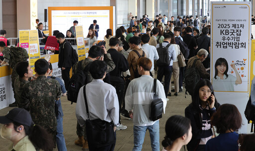 26일 서울 강남구 코엑스에서 열린 우수기업 취업박람회를 찾은 구직자들이 입장을 기다리고 있다.