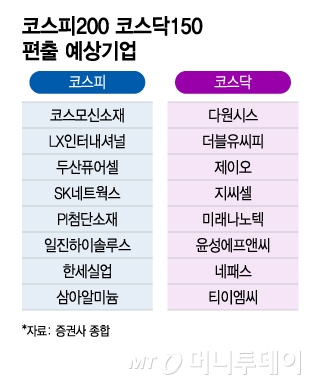 코스피200 코스닥150 편출 예상기업/그래픽=이지혜 |