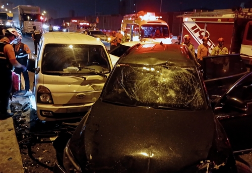 (인천=연합뉴스) 김상연 기자 = 인천에서 30대 남성이 술을 마신 채로 스포츠유틸리티차(SUV)를 몰다가 역주행 사고를 내 4명이 다쳤다.