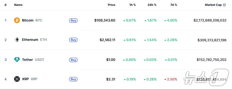 (서울=뉴스1) 박형기 기자 = 도널드 트럼프 미국 대통령이 EU 관세를 연기함에 따라 암호화폐(가상화폐)가 소폭이지만 일제히 상승하고 있다.