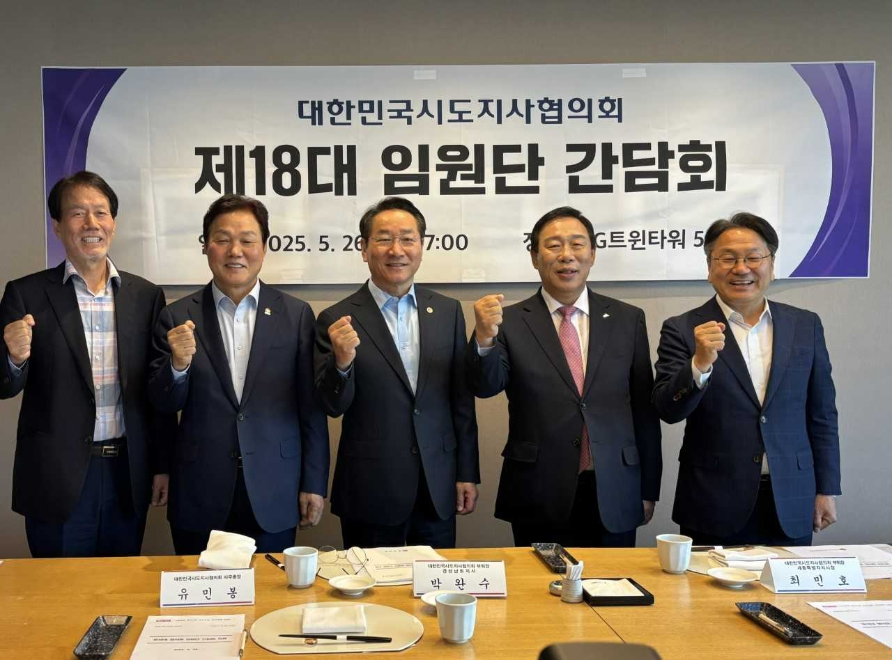 이날 열린 시도지사협의회 임원단 간담회는 유정복 인천시장(회장), 박완수 경남지사(부회장), 최민호 세종시장(부회장), 강기정 광주시장(감사), 유민봉 사무총장 등 5명이 참석했다.