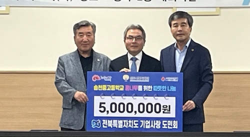 (전주=연합뉴스) 김동철 기자 = 전북기업사랑도민회는 27일 "취약계층 청소년을 위해 사용해 달라"며 전주시복지재단에 500만원을 기부했다.